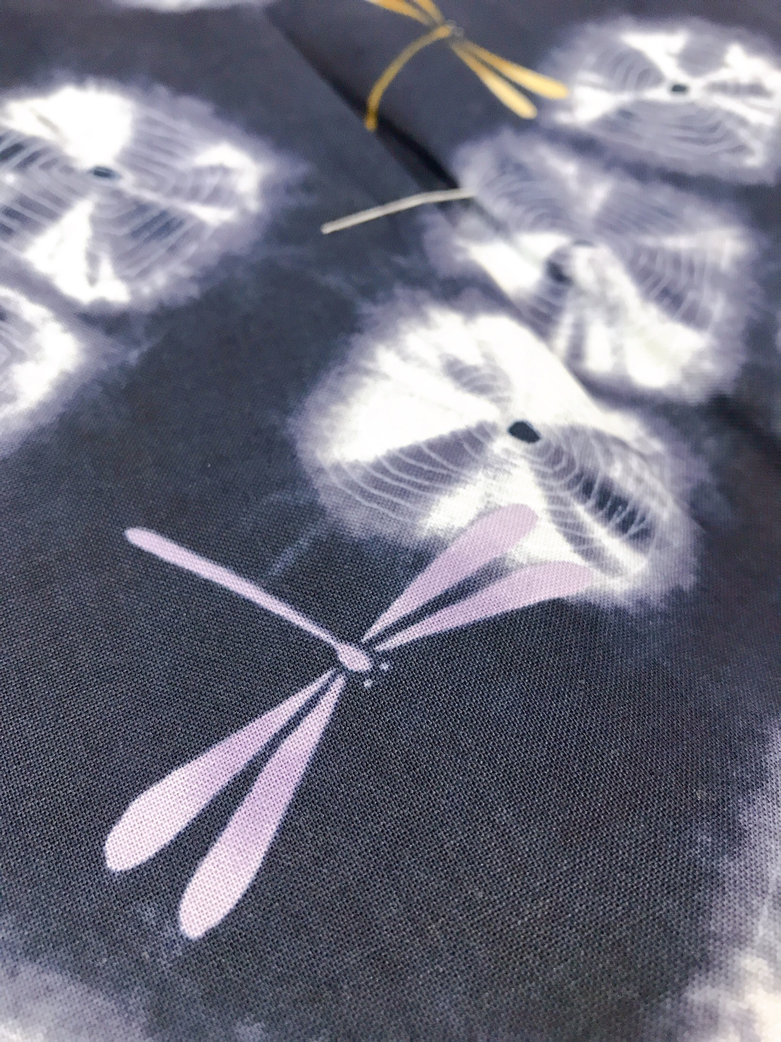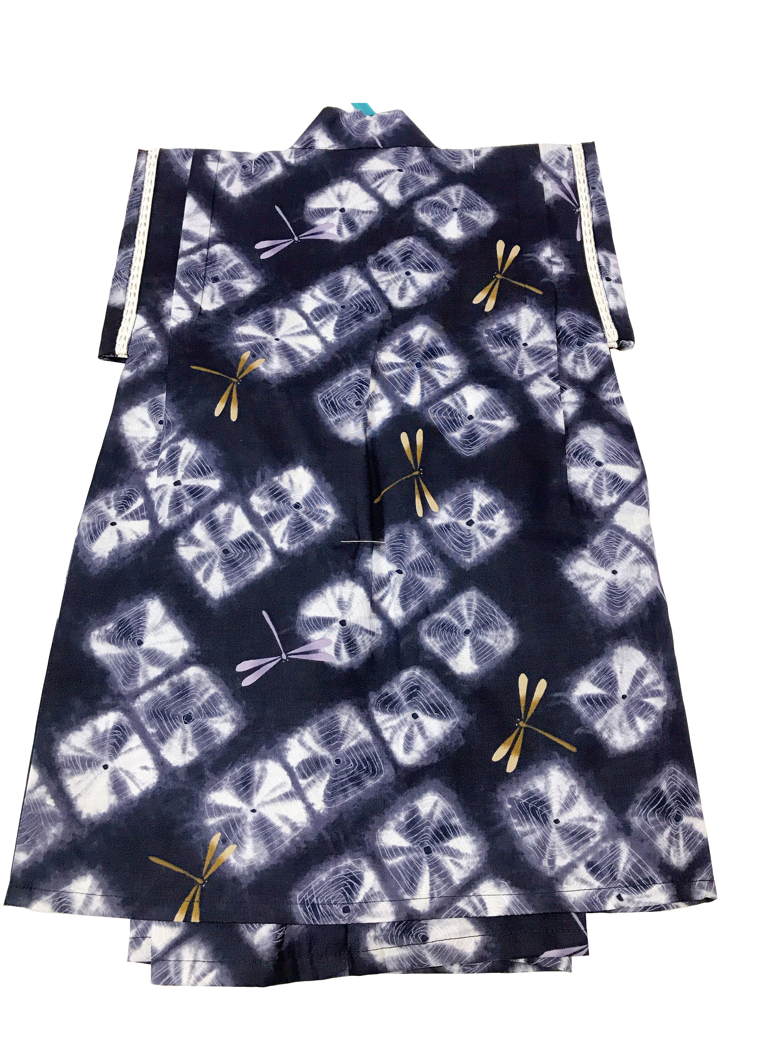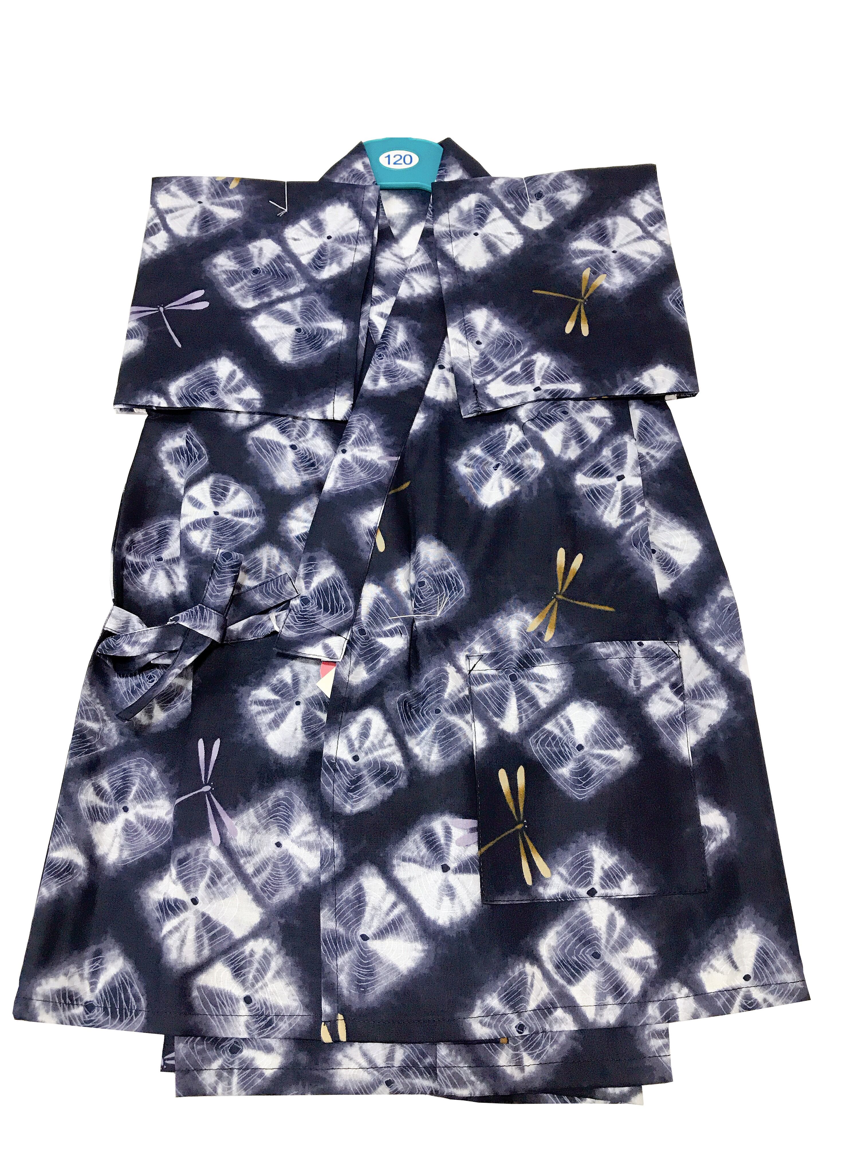 おしゃれな紫紺色に絞りの柄、トンボ柄が全体にあしらわれたカッコイイ子供甚平